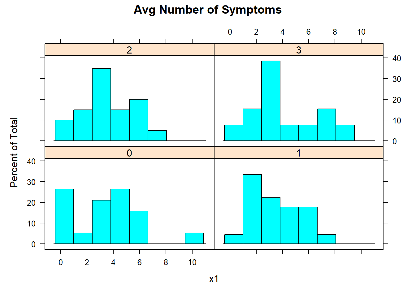 - \(V1\) (Average number of Symptoms throughout the treatment)