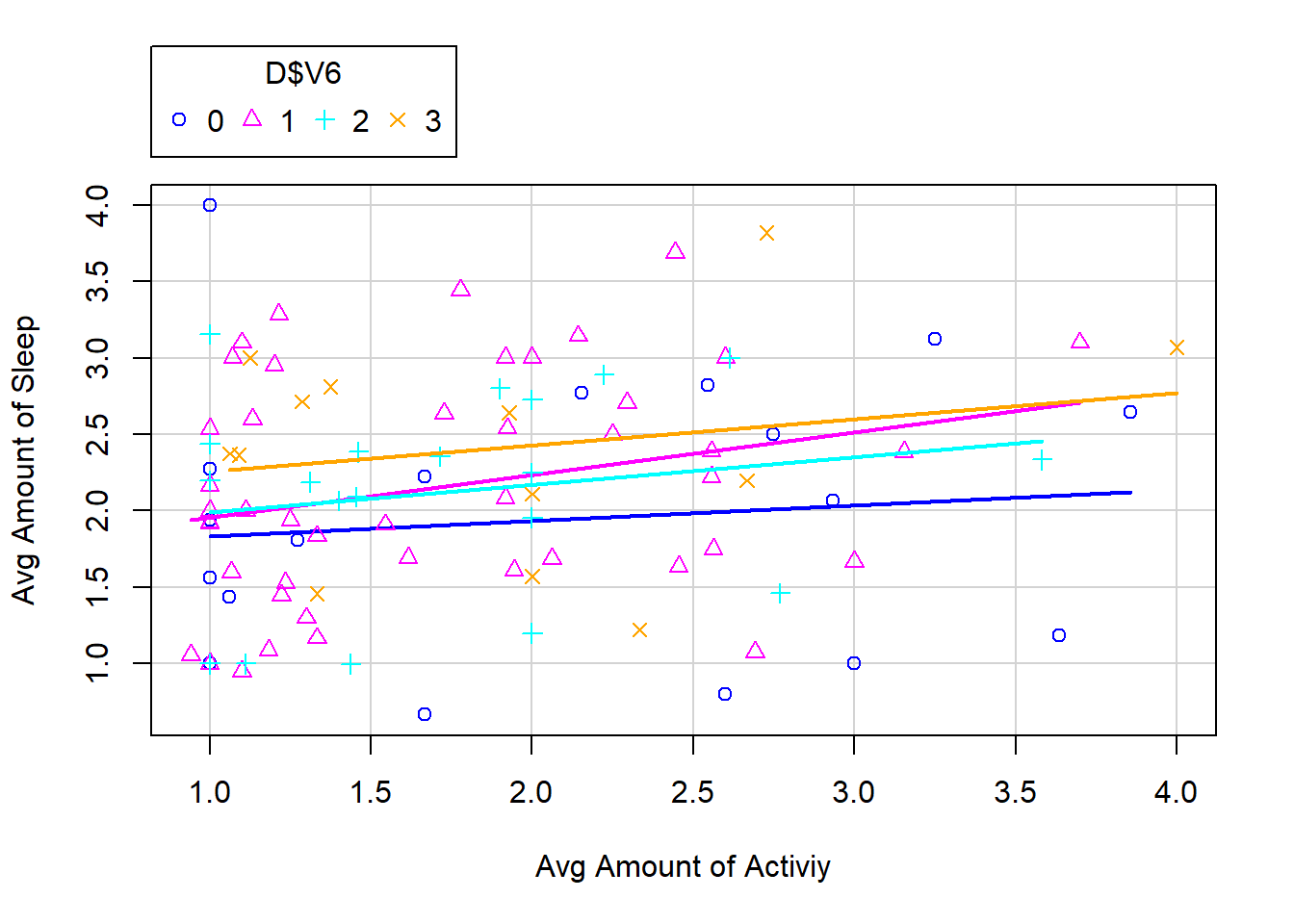 3. Col. 3: (V3) = amount of sleep (1-5 scale)