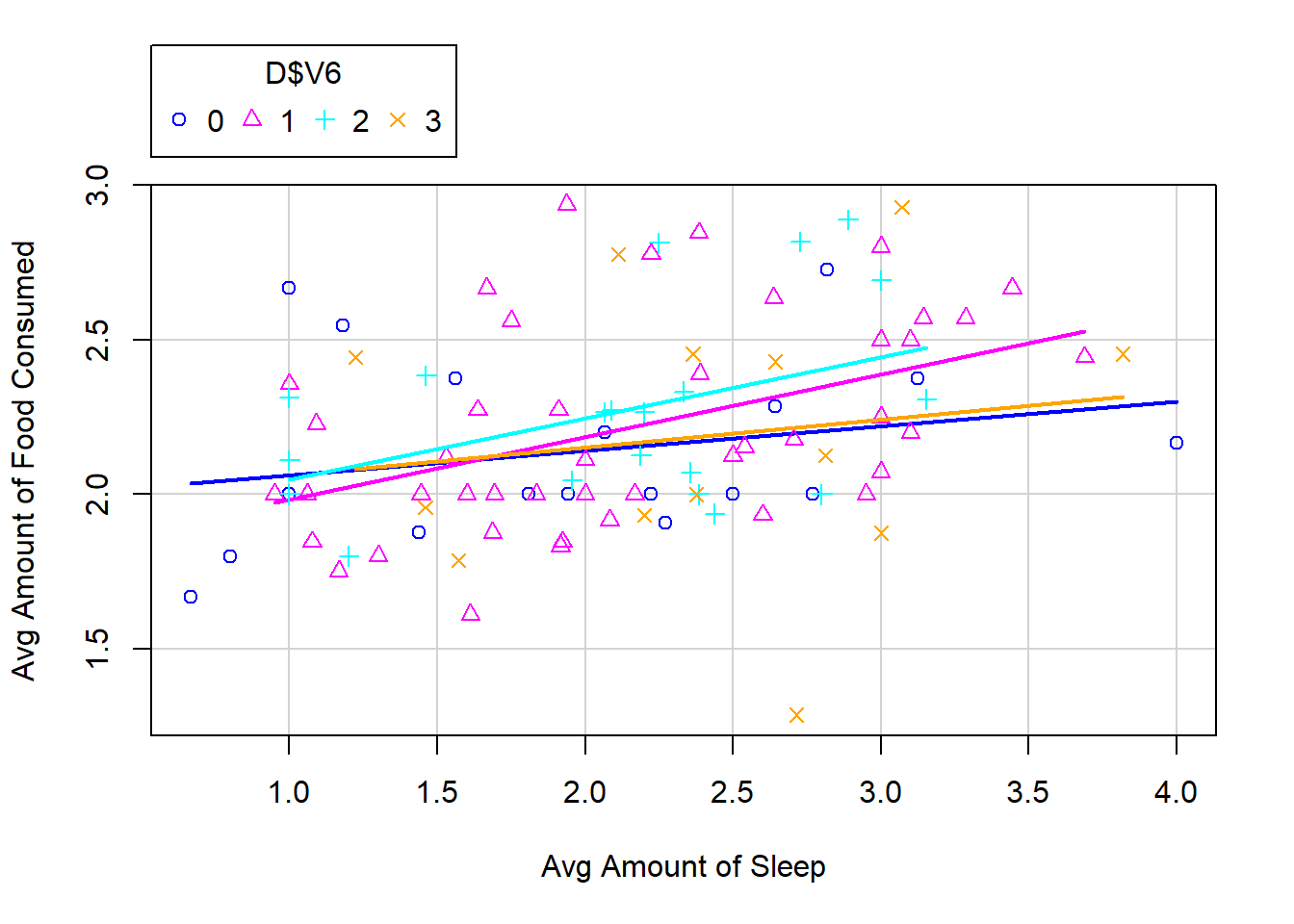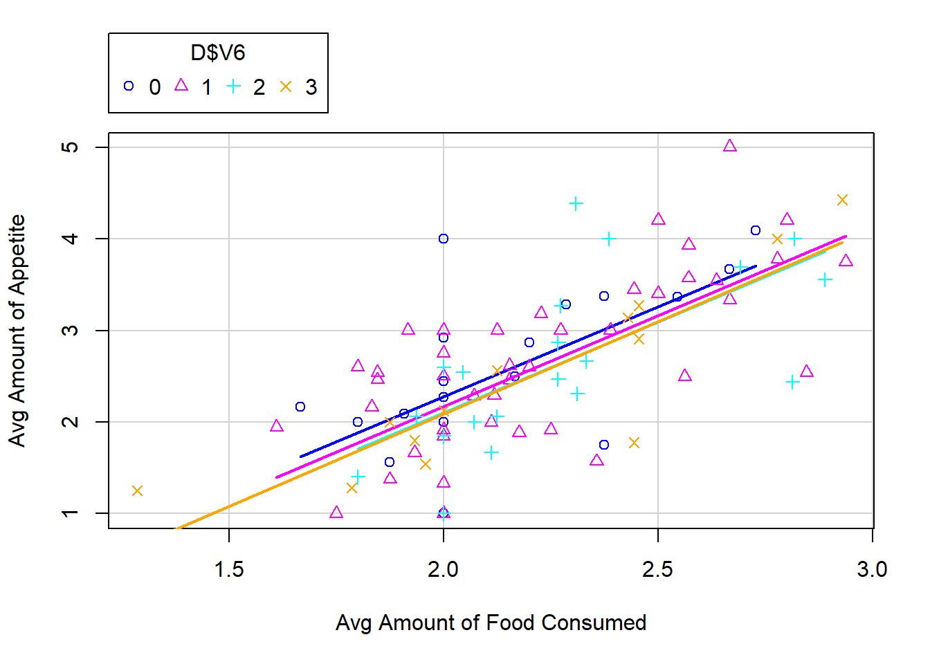 - \(V4\) (Average amount of food consumed throughout the treatment))